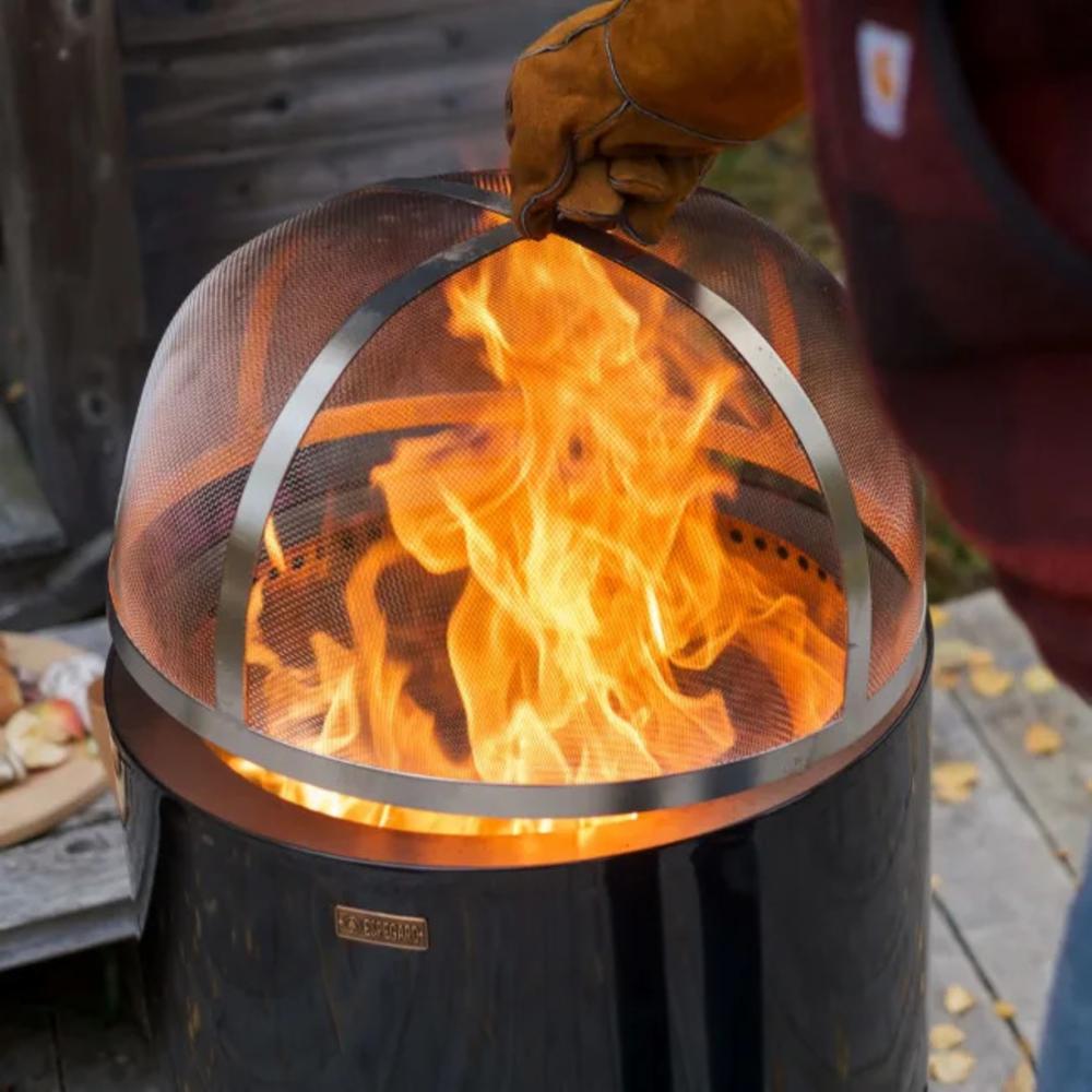 Gnistfangerlokk 50. Legges over bålet for å hindre gnistsprang. Laget i rustfri stålkvalitet nr. 304. Passer til Bålbrenner Pilar og Bålbrenner Pilar Premium 50. Stålet blånerer i varme.