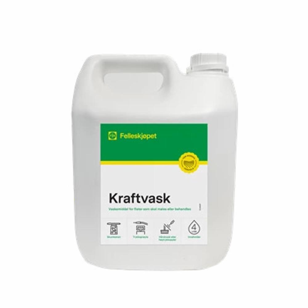 Felleskjøpet kraftvask er spesielt utviklet for å fjerne alger, mugg, sopp og annet smuss fra alle typer utvendige overflater. Rengjøringsmiddel tilpasset for flater som skal males, beises eller behandles som hus, terrassedekke, garasjegulv, kjellergulv og verksted- og produksjonslokaler. Kraftvasken gir et godt og effektivt resultat slik at ny maling/beis får god heft.
